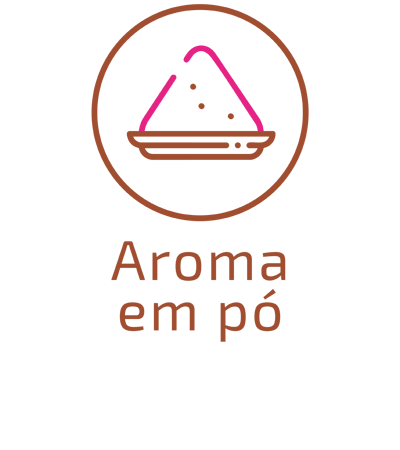 • Aroma Pó concentrado com aplicação de 0,5 a 1,5% sob peso diluição final 50 a 150g para cada 100 litros ou kg produto final;